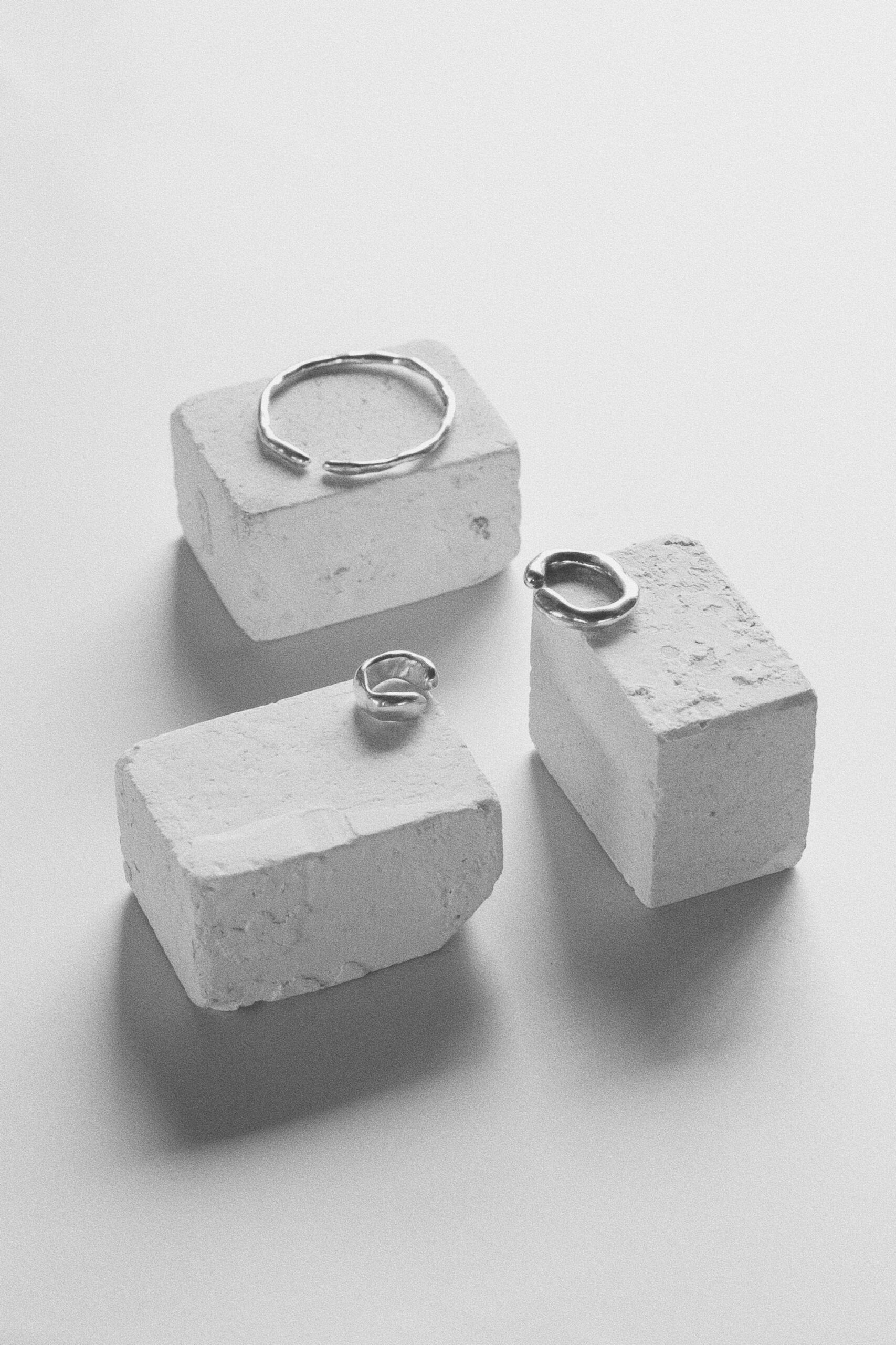 素材への敬意も感じられるシンプルなデザインと丁寧な仕上げ。彫刻的でありながらも、身体に馴染む有機的かつジェンダーレスな佇まいで、手に取る人の多様な感性を受け入れる余白を持ち合わせたジュエリーです。