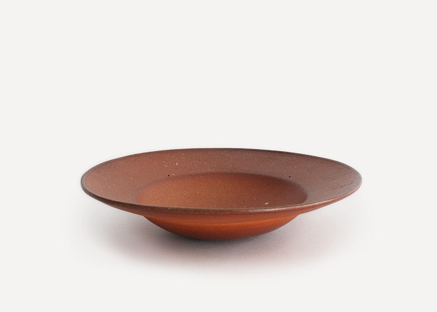 沖縄県を拠点に活動する 山本憲卓(やまもと のりたか)さんによる「焼締 深リム皿 中_赤」です。