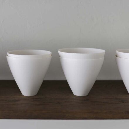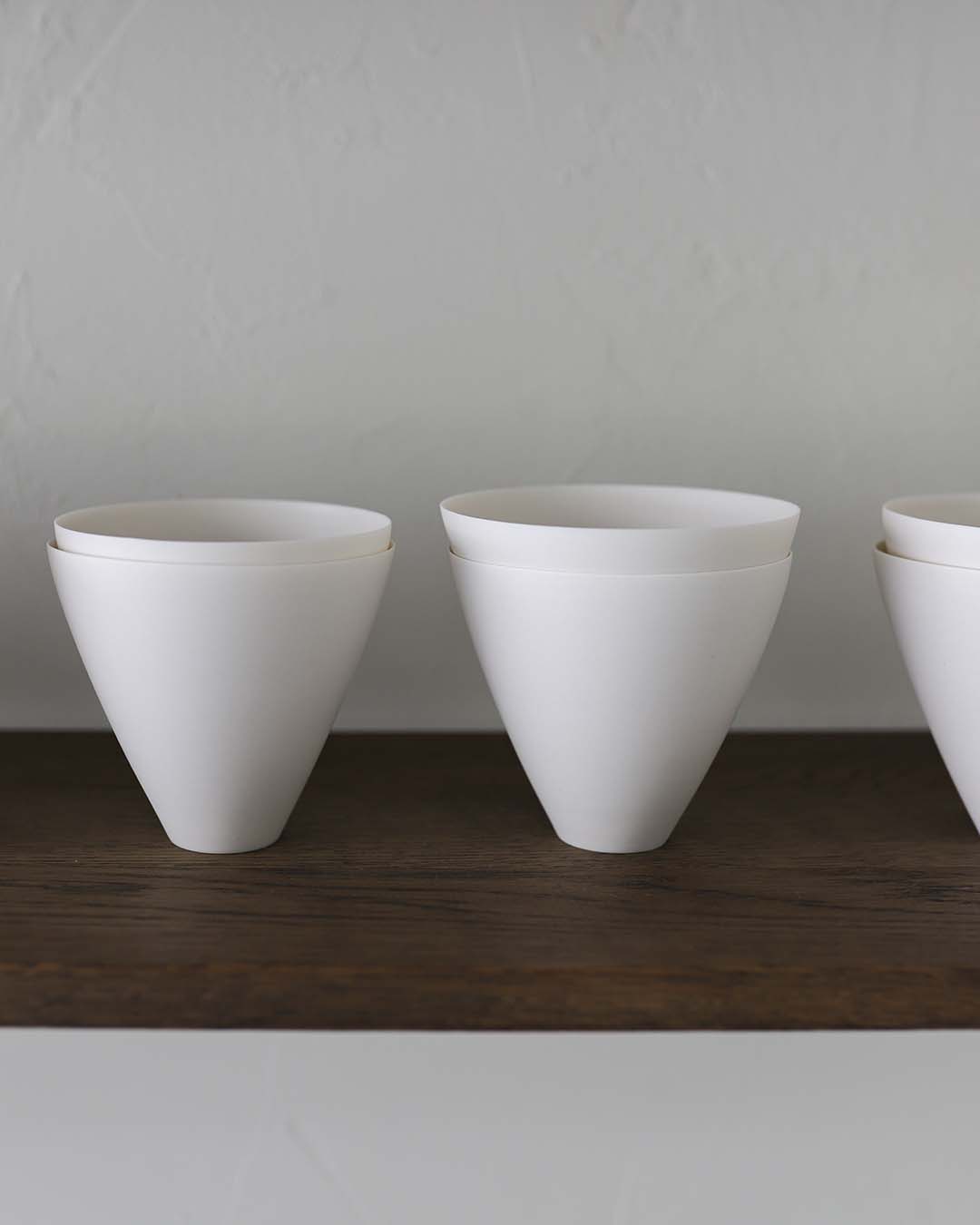 鋭く、硬く、でもやわらかい。そんな矛盾するような白磁へのイメージを持ち合わせている内田さんの作品は、一瞬の隙も見せないような凜とした造形で佇みながらも、周辺の空気をやさしく受け入れているような、なだらかな曲線を描いたフォルムが印象的です。