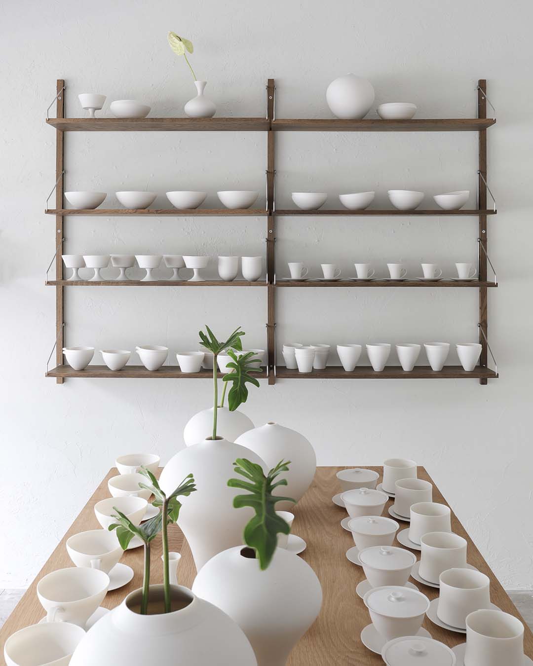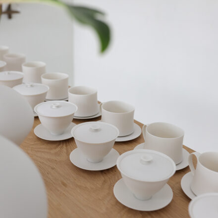 鋭く、硬く、でもやわらかい。そんな矛盾するような白磁へのイメージを持ち合わせている内田さんの作品は、一瞬の隙も見せないような凜とした造形で佇みながらも、周辺の空気をやさしく受け入れているような、なだらかな曲線を描いたフォルムが印象的です。