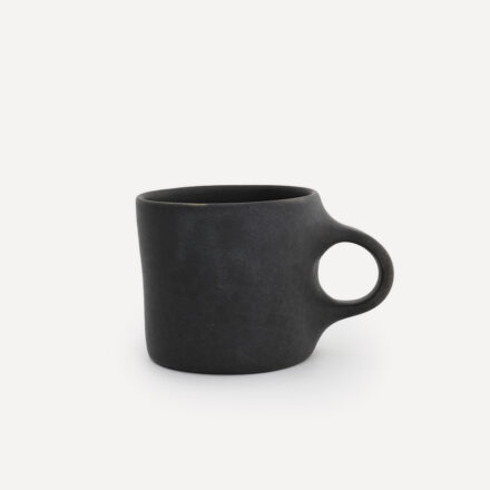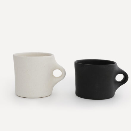 マットな炭のような黒と、細かい粒感のあるやわらかな白の「mug cup」。質感も相まって有機的なフォルムの建築物を思わせます。