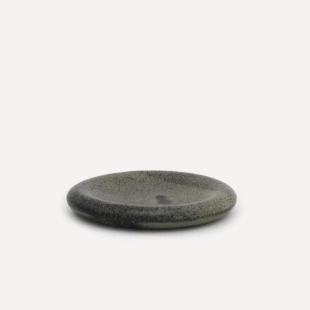 形はシンプルなプレートでありながら、存在感のある「rim plate」。しっかりとした厚みに苔のような表情が印象的です。
