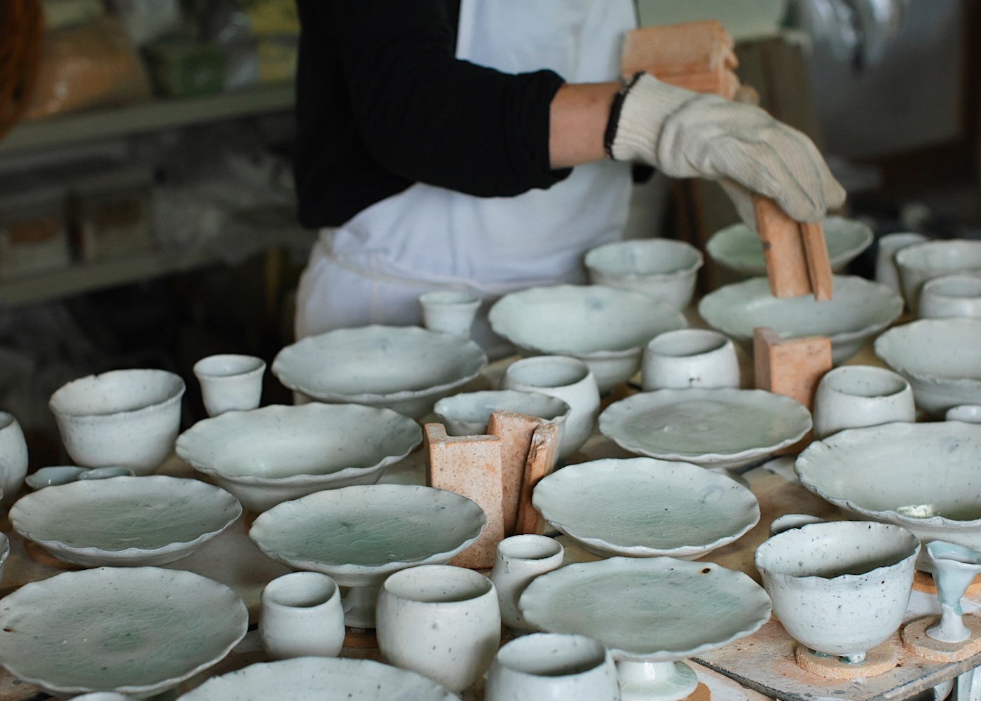 作品を作る上でモチーフとなっているものは、心にとめた景色や自然物、古い焼き物など。素材に磁器土に原土と石の粒をまぜたものを使用したり、土器を磁器土ベースで作ったりと、焼きものの常識に囚われずに作品を制作をしています。